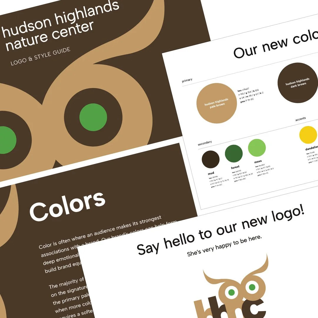Hudson Highlands Nature Center sought a logo redesign paired with a light brand refresh. Their goal was to strike a balance. Modern and fresh, youthful but still grounded. And something approachable for both parents and kids.